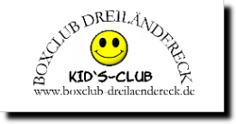 Boxen ist für jedes Kind geeignet - egal, ob Junge oder Mädchen, ob klein oder gross, ob schmächtig oder übergewichtig. Boxen ist abwechslungsreich, macht Spass und hält fit.Im KID`S-CLUB des Boxclub Dreiländereck lernen die Kinder spielerisch das Box-ABC. Unsere Trainer gehen dabei auf die persönlichen Bedürfnisse aller Kinder ein. Mit altersgerechten Trainingsmethoden werden systematisch und effektiv Koordination, Konzentration, Mut, Kraft und Ausdauer geschult und gefördert. Dadurch werden Selbstvertrauen und Selbstbewusstsein gestärkt sowie Aggressionen und Stress abgebaut.