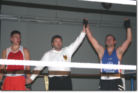 Es ist schon einige Zeit her, das der Boxclub Dreiländereck einen Meistertitel in seinen Reihen feiern konnte. Heute, am 07.April 2013, ist es soweit. Tom Schröter vom Boxclub Dreiländereck holt sich in einem harten, aber souverän geführten Finalkampf, gegen den Chemnitzer Brain Karl, den Sieg und damit den Sachsenmeistertitel 2013 in der Altersklasse Junioren bis 70kg.